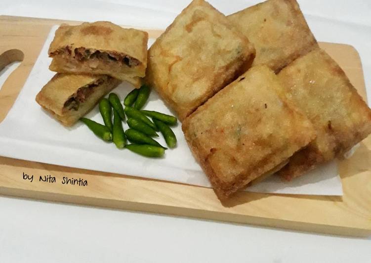 - Panaskan minyak goreng, masukkan martabak goreng dengan api sedang hingga coklat keemasan..