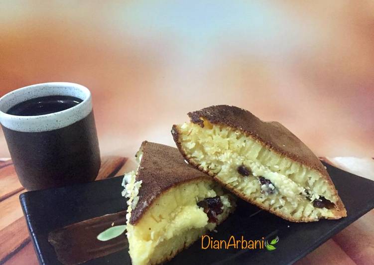 - Tambah Keju parut+Buah Cranberry atau Mesis (sesuai selera), terakhir Susu Kental Manis, lipat jadi dua, oles kulit martabak dengan Margarin (supaya lembut dan wangi)..
