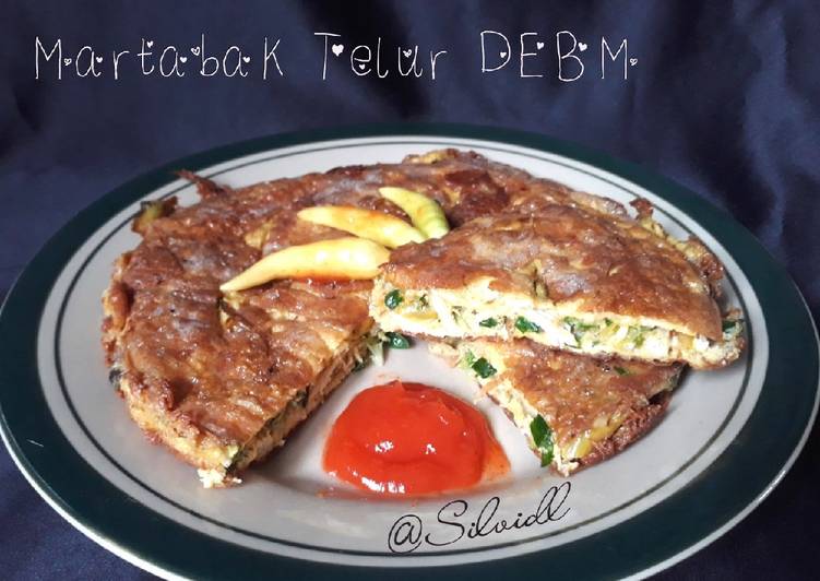 Martabak Telur tanpa Kulit/Martabak Telur DEBM/Telur Dadar Tebal. Martabak telur yang praktis dan mudah dibuat hanya dengan menggunakan teflon. Kulitnya yang renyah dan crispy serta rasa telor bercampur daging aroma kari menambah sensasi untuk menikmatinya, apalagi ditambah kuah cuko dan acar.wow enaaak sekali. Beda dengan martabak telur yang merupakan makanan yang digoreng dengan membuat sendiri kulit serta isinya.