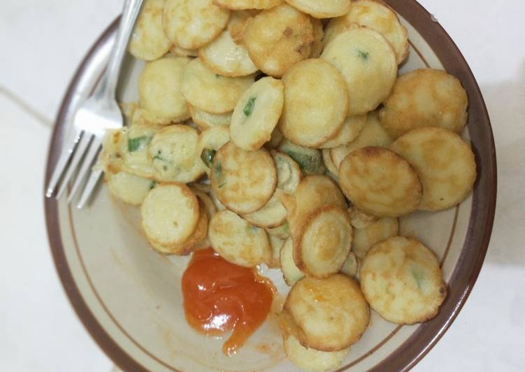- Panaskan cetakan telur(api kecil) beri sedikit minyak. Tuang 1 sendok adonan kedalam cetakan, jangan lupa dibalik. masak hingga matang..