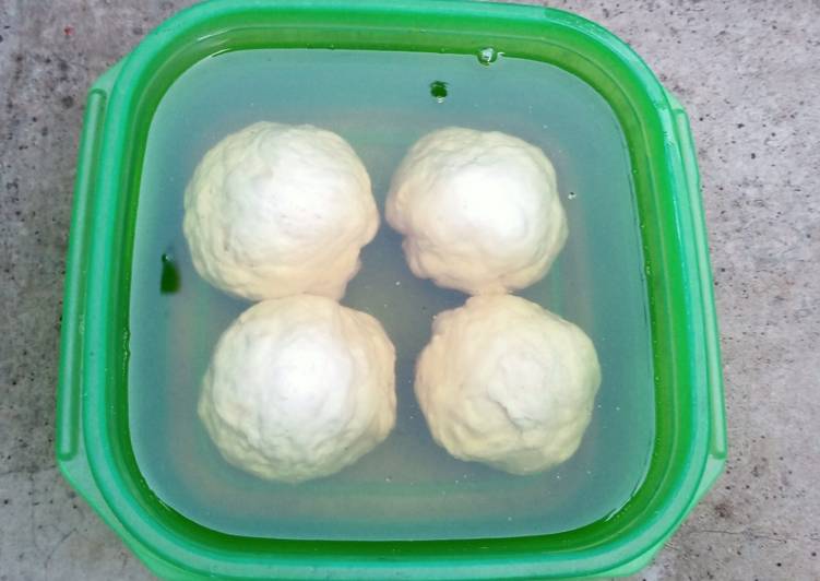 - Bagi adonan menjadi 4 bagian,dan rendam dengan minyak.Diamkan selama 30-60 menit (saya 60 mnt)jika ingin lebih elastis adonan nya disimpan sampai 5-6jm.
