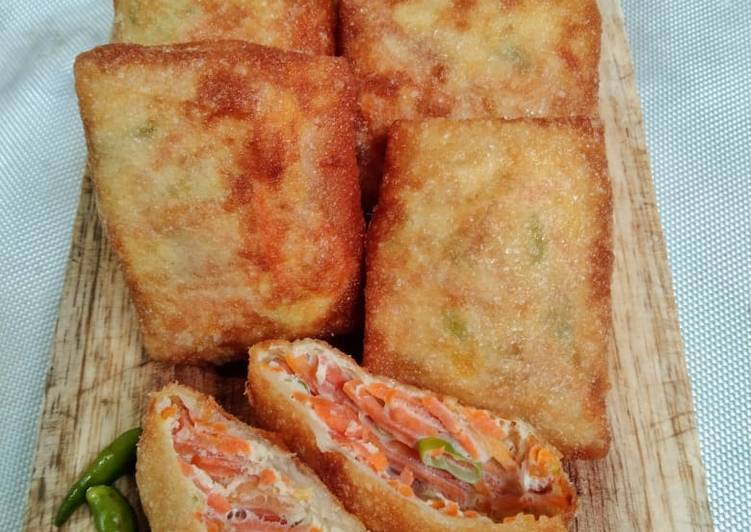 - Lalu panaskan minyak dan goreng martabak telur dengan api sedang hingga berwarna kuning kecoklatan...atau hingga matang.....